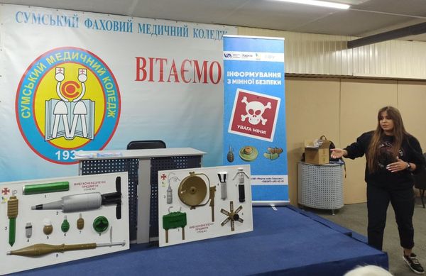 18 вересня в КЗ СОР "Сумський фаховий медичний коледж" відбулась зустріч з представниками благодійного фонду «Мирне небо Харкова» із працівниками закладу освіти з метою інформування про мінну безпеку.